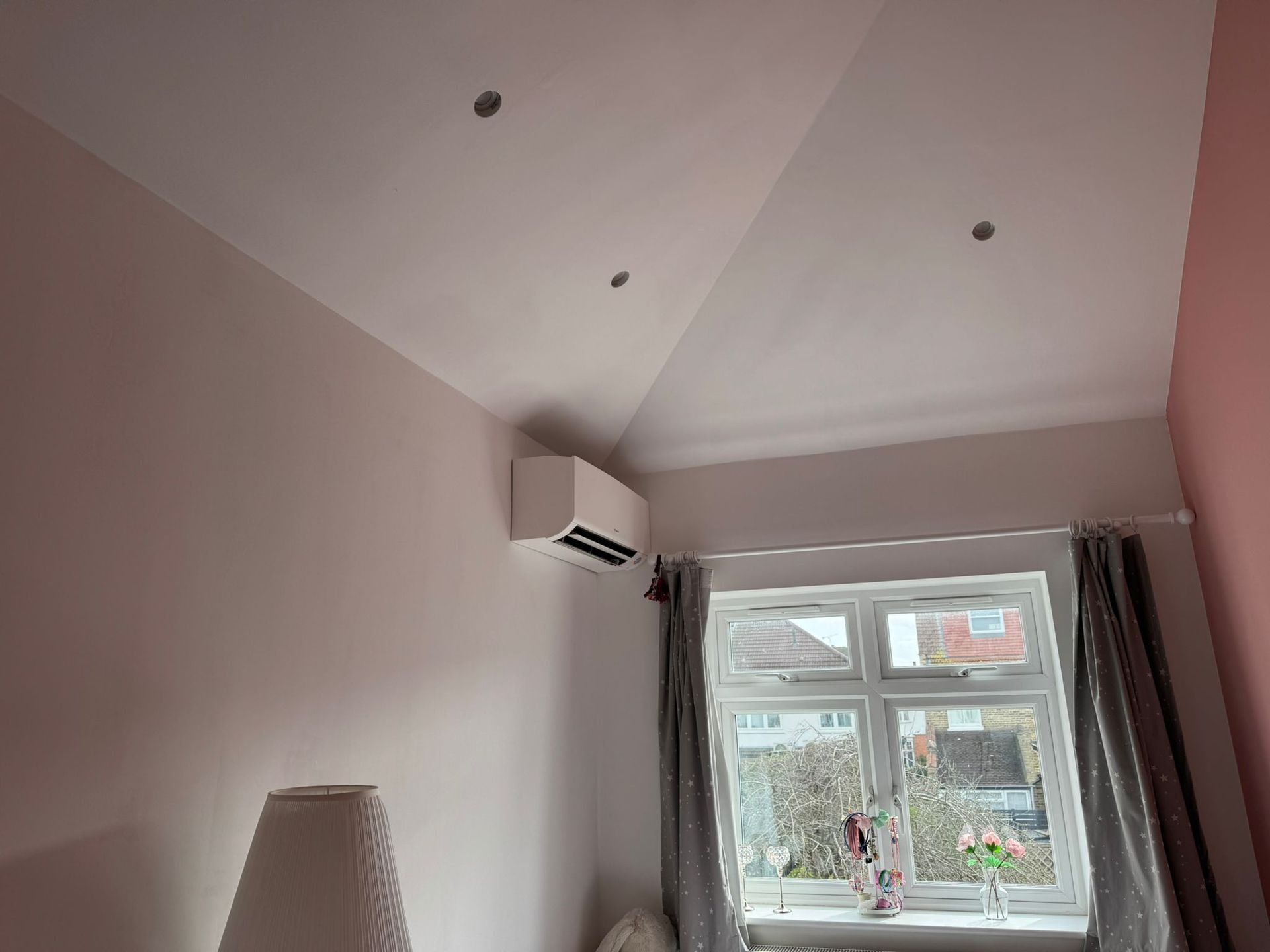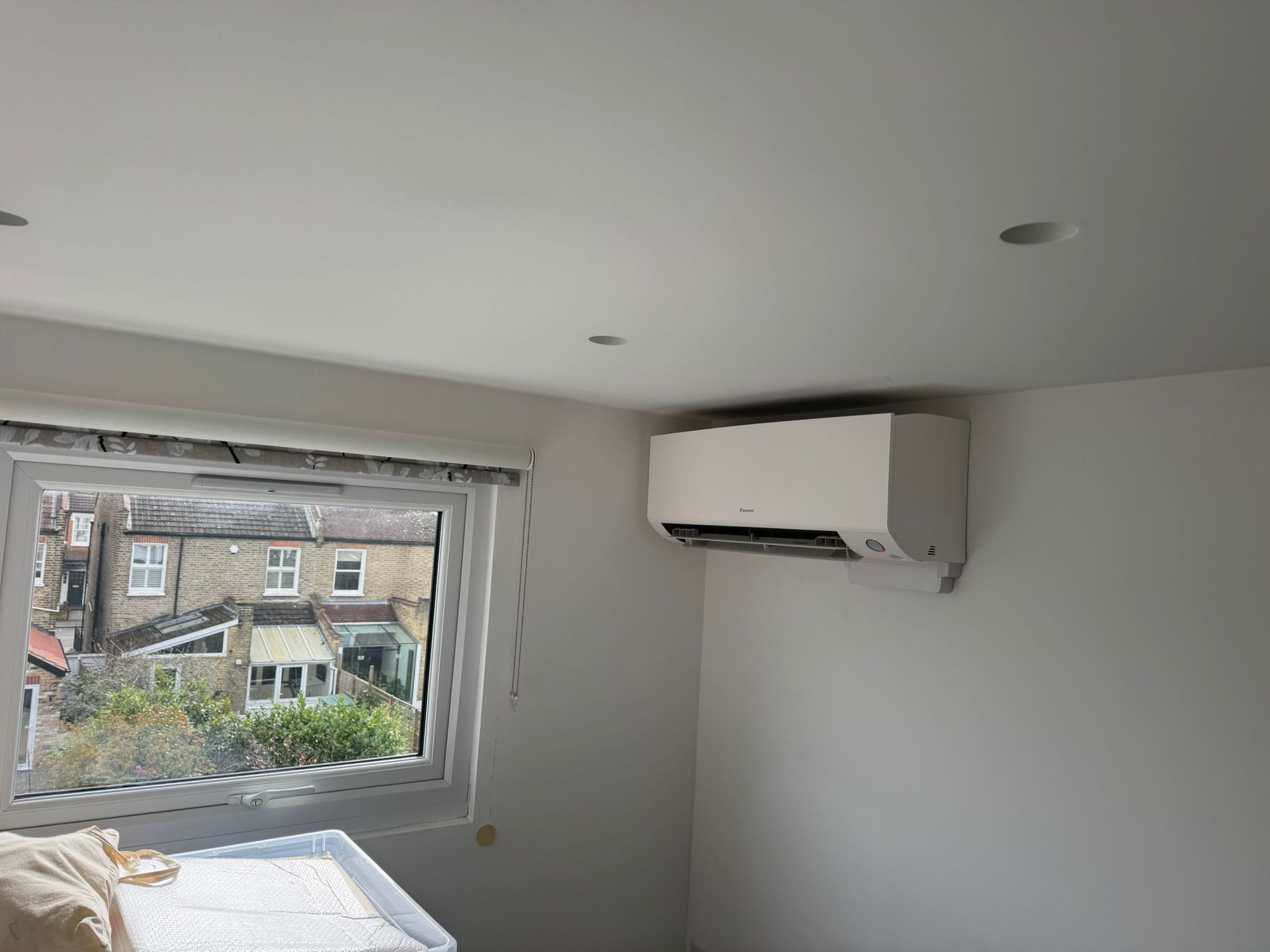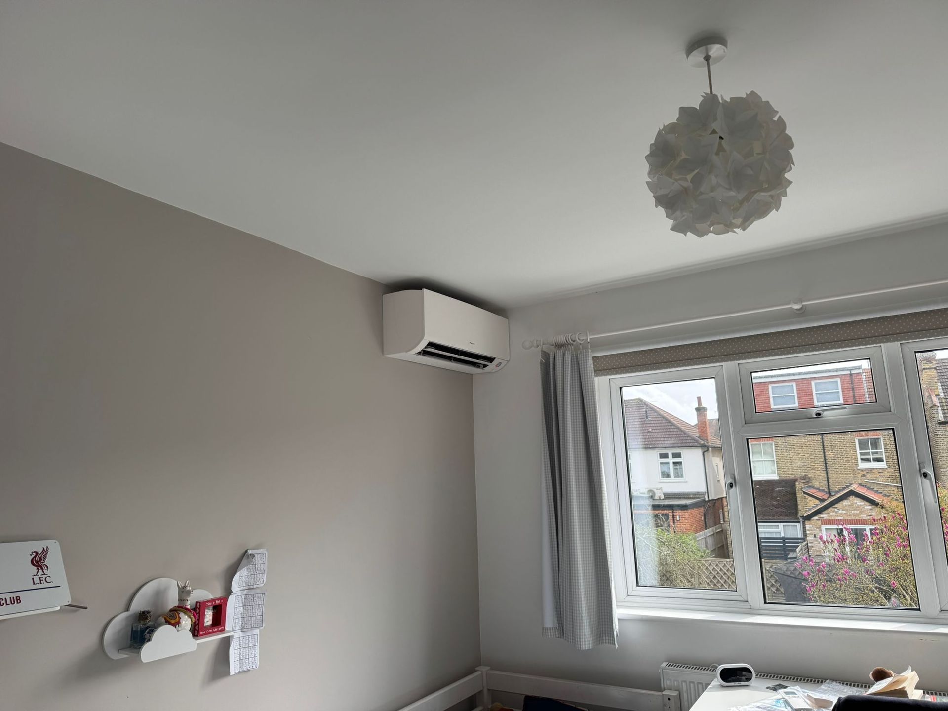 We recently completed a full air conditioning installation in Wimbledon, London, delivering tailored climate control across multiple rooms in a residential property. Our team installed high-efficiency wall-mounted units in bedrooms and living spaces, ensuring consistent temperature, quiet operation, and minimal visual impact. Each system was carefully positioned to maximise airflow while blending seamlessly with the interior design. From initial planning to final commissioning, we focused on a clean, efficient finish—providing the client with reliable cooling, improved comfort, and energy-efficient performance throughout the home.