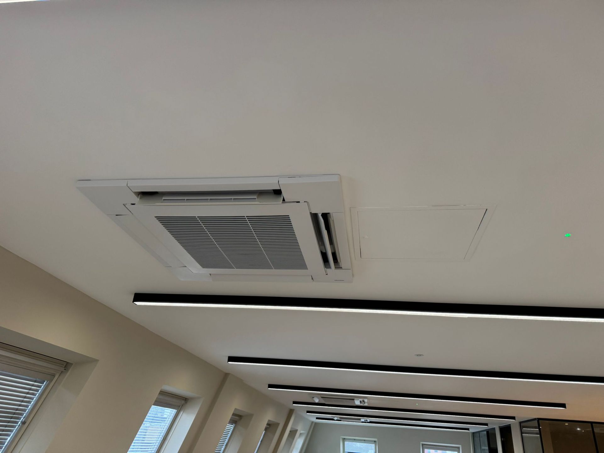 We recently completed a bespoke ceiling cassette air conditioning installation for a modern commercial property in Central London. The client required a discreet, high-performance cooling solution that complemented a clean interior design and ensured consistent comfort across multiple office zones.